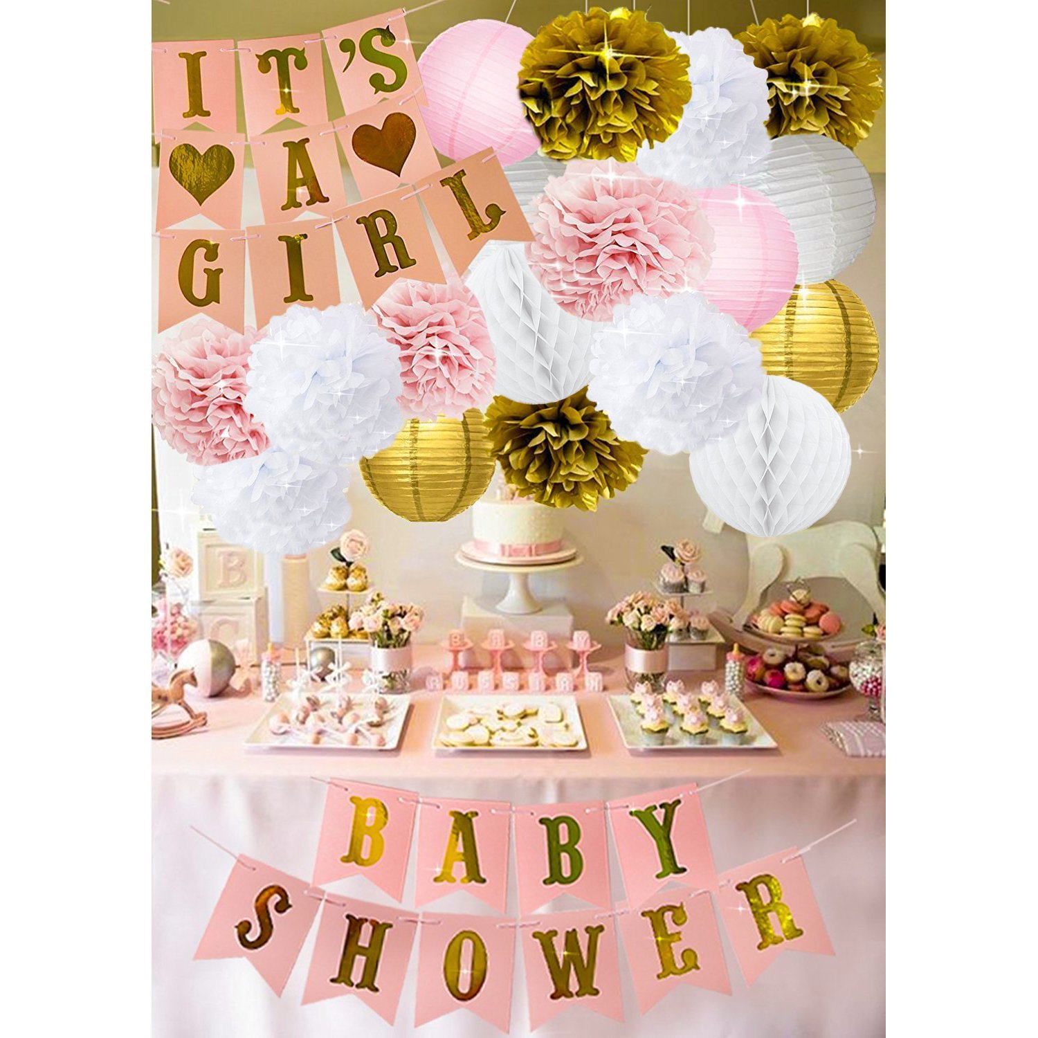 Baby Shower Decorations For Girl It Sa Girl Baby Shower Banner Garland Tassel Banners Tissue Paper Flower Pom Poms Paper Honeycomb Balls Paper