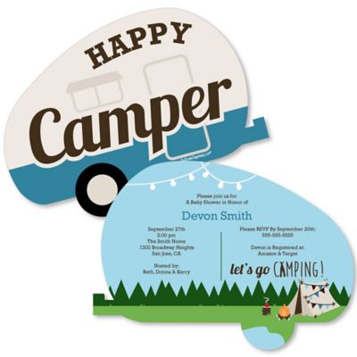 Happy Camper Shaped Camping Baby Shower Invitations Set Of 12